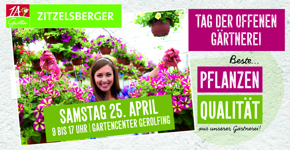 Feiert mit uns den Tag der offenen Gärtnerei am 25. April im Gartencenter in Gerolfing! Von 9 Uhr bis 17 Uhr erwarten Euch viele Angebote und tolle Überraschungen!